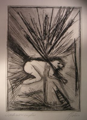 Günter Brus ANIMAlisch, Februar 2004 Titel: "Kratzspuren" Technik: Druckgrafik - Mischtechnik Beschreibung: diese zwei Blätter sind dem Zyklus "Kratzspuren" entnommen, er umfasst fünf Druckgrafiken. Brus, Günter, * 27. 9. 1938 Ardning (Steiermark), Maler, Graphiker und Schriftsteller. Mit O. Muehl, H. Nitsch und R. Schwarzkogler Mitbegründer des Wiener Aktionismus, wurde 1968 nach der Aktion "Kunst und Revolution" an der Wiener Universität zu 6 Monaten Arrest verurteilt, floh mit seiner Familie nach Berlin und kehrte 1976 nach Österreich zurück. Seine aggressiv vorgetragene Aktionskunst verstieß bewusst gegen Konventionen und Tabus. Herausgeber der "Schastrommel" im Selbstverlag ab 1969. In seinen "Bild-Dichtungen" schafft er eine Synthese von Dichtung und Malerei. Großer Österreichischer Staatspreis 1997.